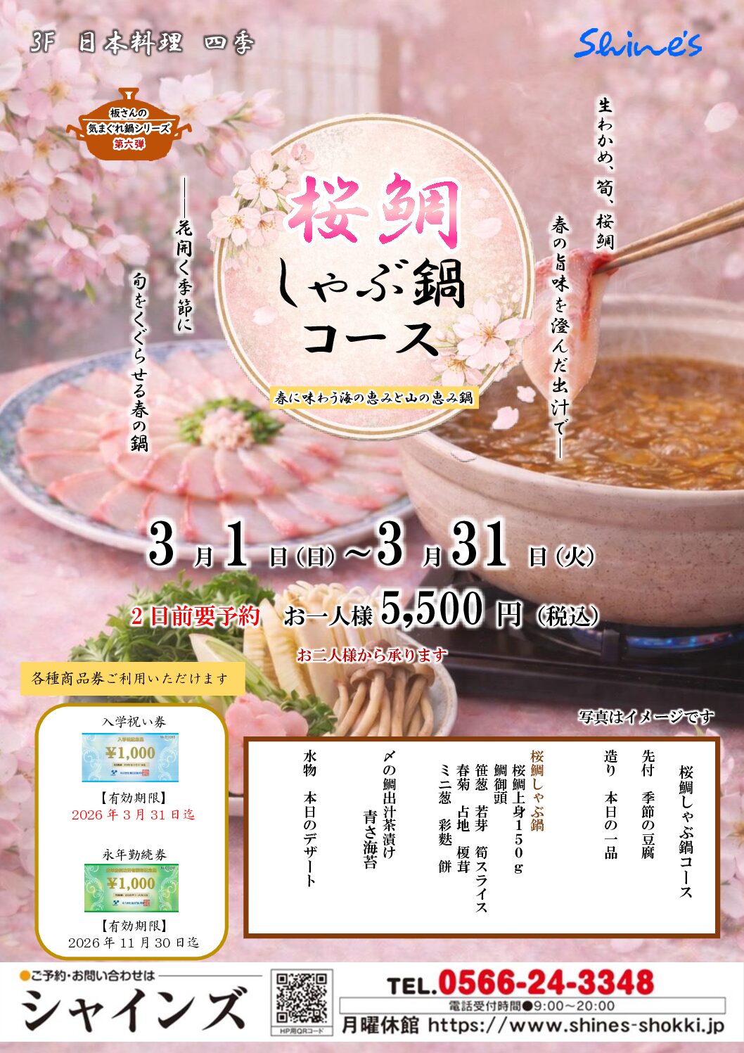・しゃぶしゃぶ鍋コース 7,300円(税込)