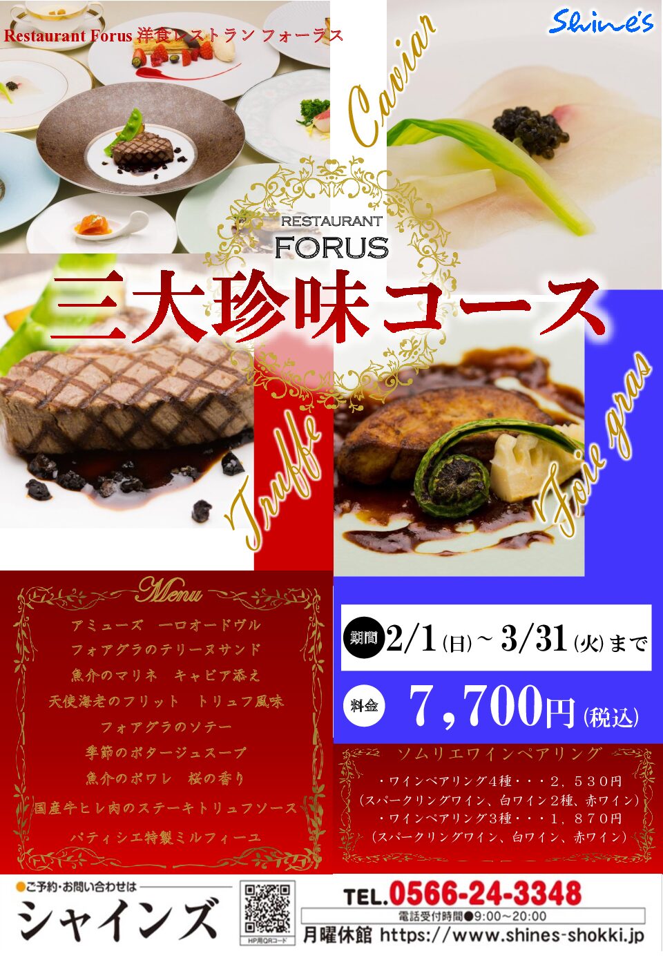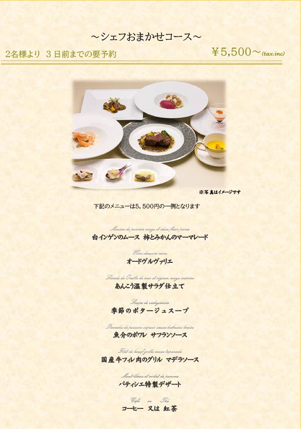 ※世界三大珍味コース開催期間中はシーズナルコース5,500円の