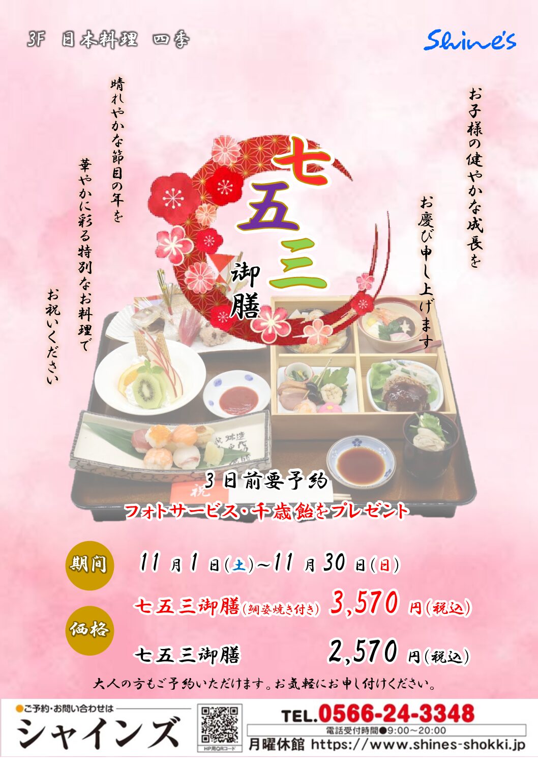 七五三御膳(鯛姿焼き付き) 3,570円(税込)